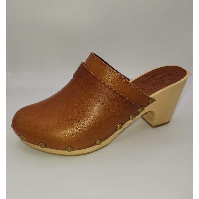 Sabot en cuir couleur camel au design intemporel, doté d’une semelle en bois clair et de clous décoratifs dorés. Confortable, élégant et facile à enfiler, il apporte une touche naturelle et chic à toutes vos tenues. Fabriqué à Marseille.